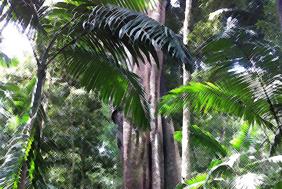 La pluie démentielle s’en donne à cœur joie, se laisse ruisseler sur le feuillage des grands arbres tropicaux, martèle les longues fougères qui s’inclinent à terre, ravive les heliconias, rebondit sur les mares regonflées de vie, dans une harmonie de notes immémoriales : flic, flac, plouf, flic flac…