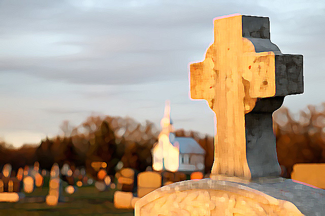 A la sortie de l’église, Catherine et Patrick durent soutenir Jeanne qui semblait avoir beaucoup de mal à avancer. Leurs regards incertains se croisèrent à nouveau un instant puis, encadrant leur mère sous la pluie qui s’était transformée en bruine froide, ils prirent le chemin du cimetière attenant à l’église, suivis par le reste de la famille et les anciens du village pour un dernier hommage au mort.